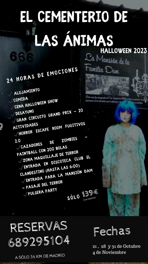 Disfruta de una pausada cena con juegos y animación al más puro estilo Halloween. Si buscas terror no es lo tuyo pero resérvate para después de la cena ya que ahí si podrás echarte a temblar en la temida Mansión Dam.