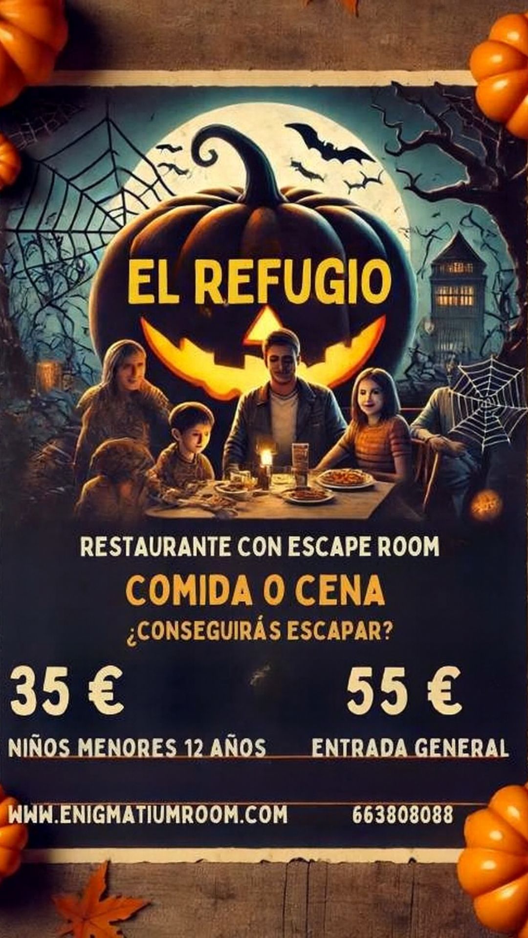 Este Halloween, vive una experiencia única en El Refugio, un restaurante con sala de escape ideal para familias. Disfruta de una comida o cena en un ambiente terroríficamente divertido, mientras intentas resolver los enigmas para escapar juntos. ¿Podrás salir a tiempo?